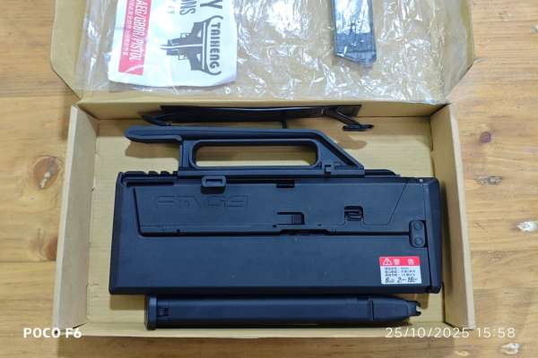 FMG 9 style. Complete Airsoft Pistol (*** Not a Kit ***) Extended Non-Dropping Outer Barrel for Stable Ballistics Enlarged Gas Cylinder and Long Pressure Point Hop-Up System New Simulated Glock Type 45 Rounds lightweight Long Magazine for Realistic Appearance Steel Sling Swivel Included Compatible with VFC Glock Series GBB Pistol Magazines Steel sling loop. Comes with 45 rounds gas magazine. Length : 265mm (folded up)/490mm Weight : 898g (without empty 226g lightweight magazine) Magazine Capacity : 45 rounds Bullet : 6mm BB Material : Aluminum, Steel, Alloy, Nylon, Rubber HOP-UP : Yes, Adjustable Blowback : Yes Modes : Semi Auto / Full Auto / Trigger Safety Power Source : Green Gas
