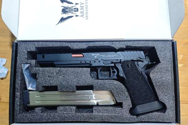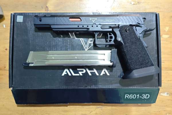 Fully licensed TTI replica. 300 to 365 fps (.83 - 1.23 joules) CNC machined aluminum frame w/ reinforced polymer grip module w/ custom stippling for unmatched manipulation Adjustable hop up Large ported compensator integrated into the design of the pistol Slide lightening cuts help the slide cycle faster with less felt muzzle flip and reduces overall weight TTI licensed Carry flared magwell aids in quick reloads in the heat of battle Taran's signature "Ghost Profile" Shrouded adjustable rear sight Steel hammer & select internals Adjustable Hop up Extended competition-style magazine release RMR cut for RMR/SRO red dot Includes a 40 round extended green gas magazine (compatible with Co2 and green gas mags) Inner Barrell: 142mm