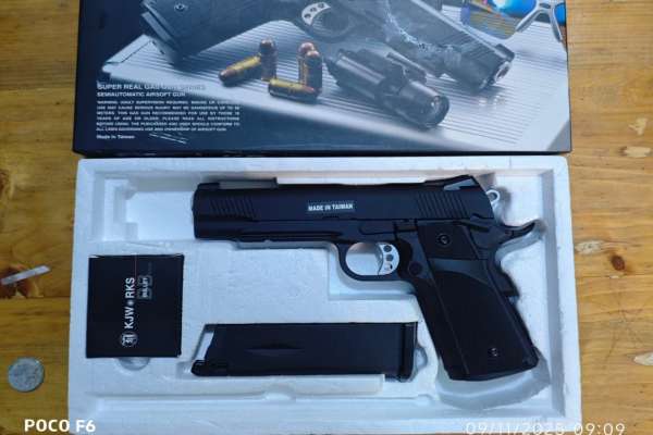 Country of Manufacture Taiwan, Province of China Platform GAS & CO2 Brand KJ Works Color Black Replica Type PISTOL Model 1911 Capacity (rds) 28 Power (fps) 300 Power Source GREEN GAS Shooting Mode Semi Auto Blowback Yes Hop-up ADJUSTABLE Net Weight (kg) 1.02 Length (mm) 220.0 Material Metal