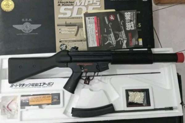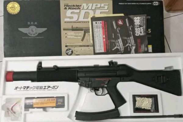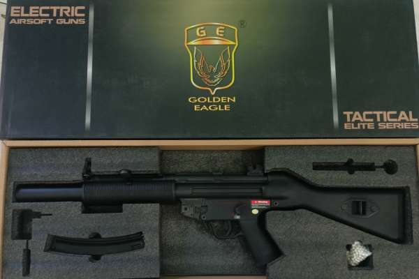 electric model with mini battery and charger semi/full auto selective fire barrel with silencer and fixed battery stock 200rd magazine included length: 778mm weight: 2380g Technical data -7mm gear box with metal bearing -reinforced piston with 1 joule spring -steel gears with delayer cam -hi torque motor long axle -hop chamber with 229mm inner barrel