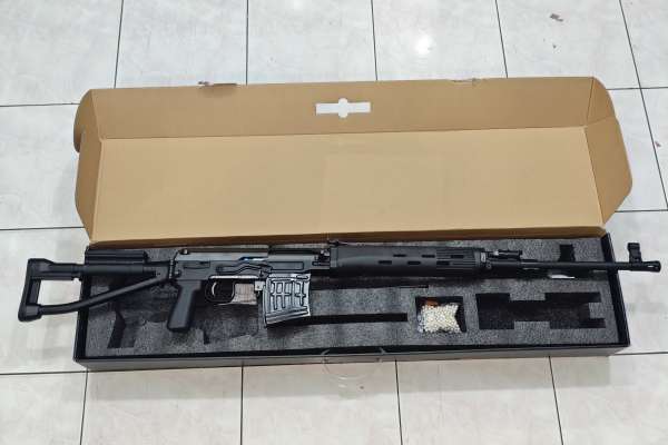 Features: Comes with Metal Conical Flash Hider with front sight. Comes with Nylon Fiber Hand guard. Comes with Metal Rear Sight with Full marking. Comes with Metal Body Frame with metal upper cover. Metal Bolt Carrier with Air cocking system. Comes with a right-folded metal tubular stock with shoulder pad and fixed cheek rest. Included 120 rounds Hi-cap Magazine. Ready to go for 413 FPS (0.2g BB) without modification. Specifications: Length: 1180mm Shooting Mode: Safety and Semi-auto. System: Spring Air cocking Color: Black Magazine Capacity: 120 rds Material: Metal and Nylon Fiber Bullet type: 6mm BB Power (Muzzle Velocity): 413 FPS (0.2g BB) Manufacturer: A&K