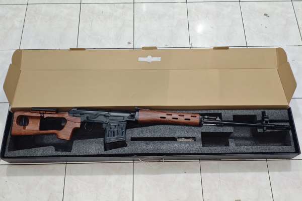 Long range accuracy and performance Compact and slick design High Power Bolt Action Air Cocking System Metal Receiver, Receiver Cover, Outer Barrel, Flash Hider, Adjustable Front and Rear Sight Metal Bayonet Lug, Piston Tube, Charging Handle, Trigger, Trigger guard and sling mount High Strength Polymer Handguards and Skeleton Stock Ergonomic / Removable Cheek Rest The A&K SVD Sniper rifle is a force on the battlefield with high capacity sniper magazine, ~450 FPS power output, dead-on accuracy, and superb range. It's compact and light weight construction is the reason why this platform is widely adopted in real combat and in Airsoft training scenarios. Specifications: Power : 420~430fps Power System : Bolt Action Overall Length : 1220mm Magazine Capacity : 200 rounds Manufacturer: A&K
