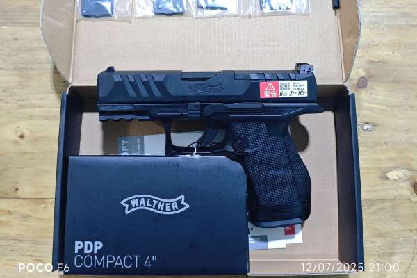 New Walther PDP GBB Airsoft Pistol Series from VFC/Umarex Walther Authorized Manufacturing and Rollmarks High-Quality CNC-Finished Cast Aluminum Alloy Slide Enlarged PDP-Style Slide Front & Rear Serrations Red Dot Optic Ready Design; 4 Optic Plate Adapters: Trijicon RMR Footprint, C-More Footprint, Leupold Footprint, Vortex Footprint Fixed Outer Barrel Design for Increased Overall Accuracy and Consistency Adjustable Windage & Elevation Rear Dotted Sight (3 Dot Sight System) Independent Dummy Extractor Ambidextrous Slide Stop Lever Guide-Hop Quick Hop-up Adjustment System Fire-Control Assembly Comes with Self-Lubricating Surface Treatment Increased Cylinder Size for Stronger Recoil Impulse Country of Manufacture Taiwan, Province of China Platform GAS Brand Umarex Color Black Originating Armory WALTHER Replica Type PISTOL Model OTHER Capacity (rds) 20 Power (fps) 320 Power Source Green Gas / Top Gas Shooting Mode Semi Auto Blowback Yes Hop-up ADJUSTABLE Net Weight (kg) 0.74 Length (mm) 215.0 Inner Barrel Length 88 Content Included Umarex Walther PDP Compact 4inch GBB Airsoft Pistol (by VFC) Material Metal