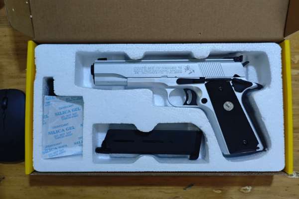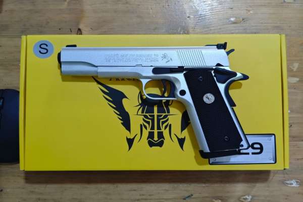 Army Armament R29 MK IV Cold Cup National Match GBB Pistol (Silver) 1:1 Ratio realistic gas blow back airsoft pistol Gas Blow Back Pistol with Semi-Automatic Shooting Mode Metal Slide Engraved “GOLD CUP” Marking on Slide Metal Frame Metal Outer Barrel (Black Color) Metal Front Sight and Adjustable Rear Sight Metal recoil spring rod With Classic non-slip grip Cover Metal trigger, magazine release, Slide Catch, Hammer & Grip Safety (Black Color) Metal 26 Rounds gLoading Capacity Gas Magazine