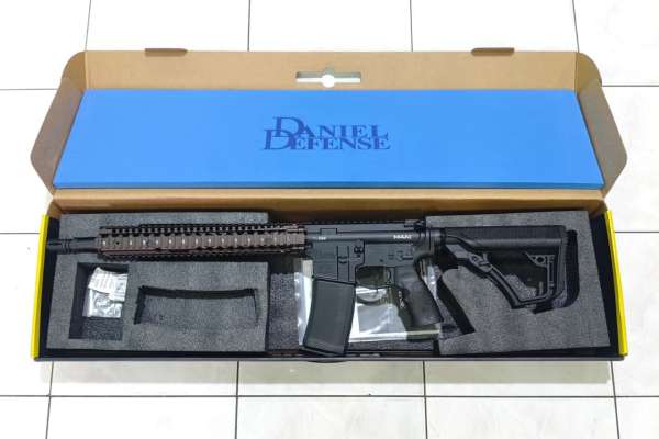 Specifications: Ammo Size 6mm Barrel Thread Size (mm) 14 Barrel Thread Type CCW Blowback 1 Capacity (rds) 35 Color Black Country China Hop up ADJUSTABLE Inner Barrel Length (mm) 363 Length (mm) 790.0 Magazine Type Gas Rifles / SMGs Material Metal Net Weight (g) 2886.0 Style DANIEL DEFENSE Platform GAS Power (fps) 390 Power Source Green Gas / Top Gas Replica Type RIFLE Shooting Mode Semi Auto / Full Auto Size Black Key Feature Semi & Fully Automatic Shotting Mode Metal Style Receiver (Engraved "Daniel Defense" and "M4A1" markings) Picatinny Rail on Top Metal 320mm dark earth Daniel Defense SOPMOD RIS II handguard with full Picatinny rail system Metal 350mm outer barrel with KAC M4QD-style muzzle brake (14mm CCW) Metal Gas Block with a Gas Tube Polymer Daniel Defense Enhanced Buttstock with 6-position metal buffer tube Polymer Daniel Defense Tornado pistol grip with integrated trigger guard Steel magazine release, Steel selector switch, Steel bolt catch, Steel Trigger & Metal charging handle Polymer 35 rounds Loading Capacity Daniel Defense style MWS Magazine With Marui MWS gas blowback system CNC aluminum construction with QPQ steel reinforced components
