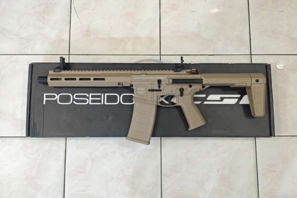Poseidon x CSI Theseus PDW M4 AEG – Medusa ETU, Integrated Tracer, Compact CQB Beast The Poseidon x CSI Theseus PDW is not your average entry-level AEG. This compact rifle combines high-tech innovation with practical battlefield performance, delivering unbeatable value in a lightweight PDW platform. Built around the Medusa Electronic Trigger Unit (ETU) and a built-in tracer, the Theseus is tuned for domination — indoors or out. With Bluetooth connectivity and app-controlled firing modes, the Medusa ETU puts full customization at your fingertips. Whether you’re clearing rooms at a local CQB arena or skirmishing in low light, the quick-toggle integrated tracer and Poseidon’s patented air cushion barrel help you land your shots with precision and style. Designed with real players in mind, the Theseus PDW features a quick-change spring system, upgraded internals, and ambidextrous controls — all wrapped in a rugged yet featherweight polymer chassis. It’s a serious tool for serious players, and it’s only available through Airsoft Extreme. Key Features Bluetooth-enabled Medusa ETU – App-programmable fire modes, diagnostics, and updates Built-in Medusa Eye Tracer Unit – Toggle via trigger pull, supports red and green tracers Air Cushion Barrel System – Patented Poseidon design for tight groupings and increased range 8mm Bearing V2 Gearbox – Includes silent piston, full steel rack, QD spring guide, and MOSFET Lightweight PDW Platform – Polymer M-LOK handguard and receiver for fast handling Ambidextrous Controls – Fire selector and mag release accessible from both sides Oversized Battery Compartment – PDW stock fits 11.1V LiPo with ease Included 220rd Mid-Cap Magazine – No winding, no rattle