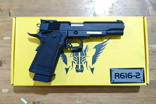 Manufacturer: Army Armament SKU: ARMY-R616-2 Features: Upgraded steel Hammer, Sear, Disconnector, Valve knocker, Fire pin lock Specification: Main Material : Aluminum, Metal Alloy, Polymer Magazine Capacity : 30 Rounds 6mm BB Overall Length : 230mm Inner Barrel Length : 85mm Weight : 970g System : Gas Blowback, Adjustable Hop-Up Power Source : Top / Green Gas Fire Mode : Semi-Auto / Safety Muzzle Velocity : Approx. 300-320 Fps with 0.2G BB