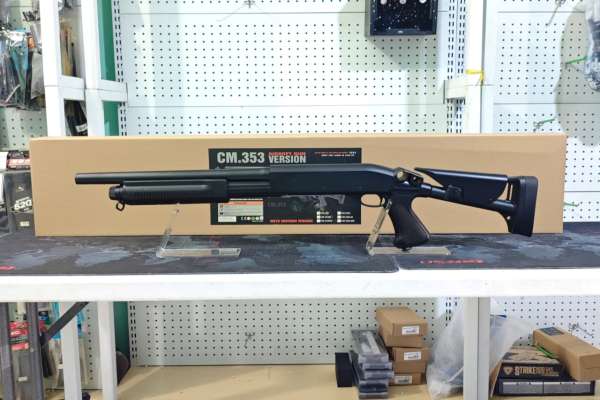 Specification: Main Material : Metal receiver, metal barrel Magazine Capacity : 30 rounds Shotgun Shell Overall Length : 820 / 940 mm Inner Barrel Length : -mm System : Spring Pump Action Power Source : Spring Power Fire Mode : 3 Round Per Shot Muzzle Velocity : Approx. 300 Fps with 0.2G BB